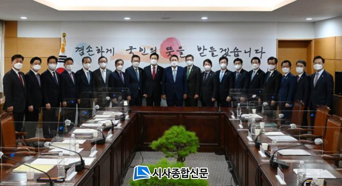 À̳¯ °£´ãȸ´Â À±¼®¿ ´ç¼±ÀÎÀÌ Èĺ¸ ½ÃÀýºÎÅÍ °Á¶ÇØ ¿Â Áö¿ª ±ÕÇü¹ßÀü¿¡ ´ëÇØ Àü±¹ ½Ã‧µµÁö»çµéÀÇ ÀǰßÀ» ûÃëÇϱâ À§ÇØ ¸¶·ÃµÆÀ¸¸ç, ±èº´ÁØ ´ëÅë·ÉÁ÷ ÀμöÀ§¿øÈ¸ Áö¿ª±ÕÇü¹ßÀü Ưº°À§¿øÈ¸ À§¿øÀåÀÌ ¹è¼®Çß´Ù.