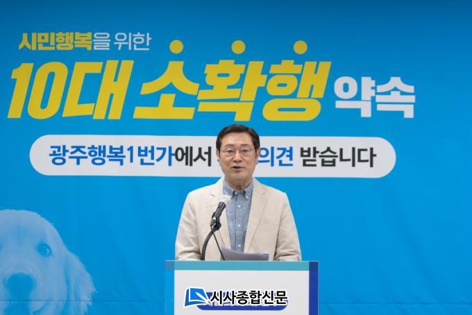 ÀÌ È帴 ¡°Áö³ 4³â µ¿¾È Å« ½Ã´ëÀû ȵγª ½Ã´ëÁ¤½Å ½ÇÇö¿¡ ÁÖ·ÂÇÑ °á°ú ±¤ÁÖÀÇ À§»ó°ú µµ½Ã °æÀï·ÂÀº Å©°Ô ³ô¾ÆÁö°í ÀÖÁö¸¸ ¿ì¸® ½Ã¹ÎµéÀÌ Àϻ󿡼 °Þ´Â ¾ÆÇİú ¾î·Á¿òÀ» º¸´Ù °¡±îÀ̼ ¼¼½ÉÇÏ°Ô »ìÇÇÁö ¸øÇß´Ù´Â ¾Æ½¬¿òÀÌ ÀÖ´Ù¡±¸ç ¡°¾ÕÀ¸·Î´Â ´õ ³·°Ô, ´õ °¡±îÀÌ ½Ã¹Î ÀÏ»ó ¼ÓÀ¸·Î µé¾î°¡´Â µû¶æÇÑ ¡®¿ì¸® ½ÃÀ塯ÀÌ µÇ°Ú´Ù¡±°í °ø¾à¹ßÇ¥ ¹è°æÀ» ¼³¸íÇß´Ù.