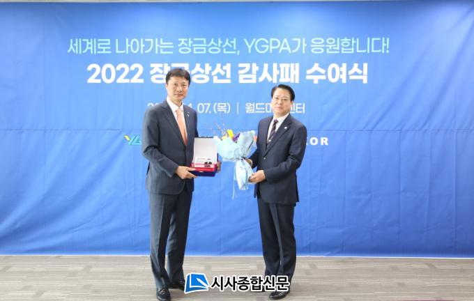 [½Ã»çÁ¾ÇսŹ® = Àå¹Î±Ô ±âÀÚ] ¹Ú¼ºÇö ¿©¼ö±¤¾çÇ׸¸°ø»ç(YGPA) »çÀåÀº 7ÀÏ ¿ùµå¸¶¸°¼¾ÅÍ¿¡¼ ±¤¾çÇ× ÃÖ´ë Á¤±â¼± ±âÇ×¼±»çÀÎ Àå±Ý»ó¼±ÀÇ ±Ýâ¿ø »çÀå¿¡°Ô °¨»çÆÐ¸¦ ¼ö¿©Çß´Ù.
