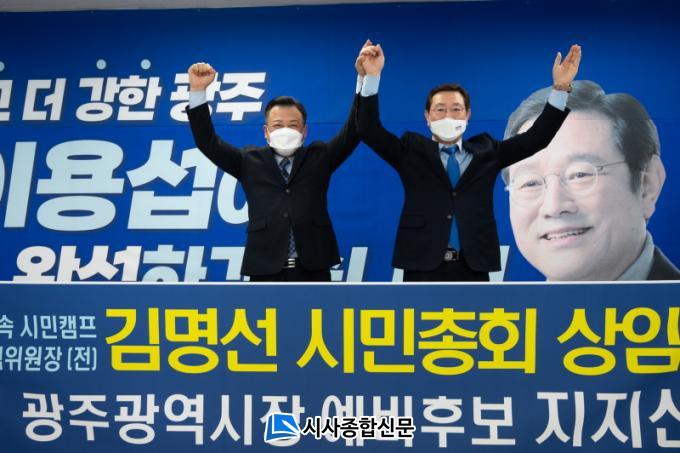 Áö³ 10ÀÏ ¿ÀÈÄ ±¤ÁÖ±¤¿ª½Ã ¼±¸ ¿îõ·Î ¼ÒÀç À̿뼷 ¿¹ºñÈĺ¸ ¼±°Å»ç¹«¼Ò¿¡¼ ¿¸° ÁöÁö¼±¾ð¿¡´Â ±è¸í¼± »óÀÓ´ëÇ¥¿Í ½Ã¹ÎÄ·ÇÁ ´õ¹àÀº¹Ì·¡À§¿øÈ¸ Àü ÀÓ¿øÁø ´Ù¼ö°¡ ÀÚ¸®¸¦ ÇÔ²² ÇÏ¿´À¸¸ç, À̿뼷 ¿¹ºñÈĺ¸ ÁöÁöÀÚ ¼ö ¹é¸íÀÌ »ç¹«¼Ò¸¦ °¡µæ ¸Þ¿î °¡¿îµ¥ ½ÃÁ¾Àϰü ±äÀåµÇ°í ¿¶í ºÐÀ§±â¿¡¼ ÁøÇàµÇ¾ú´Ù.