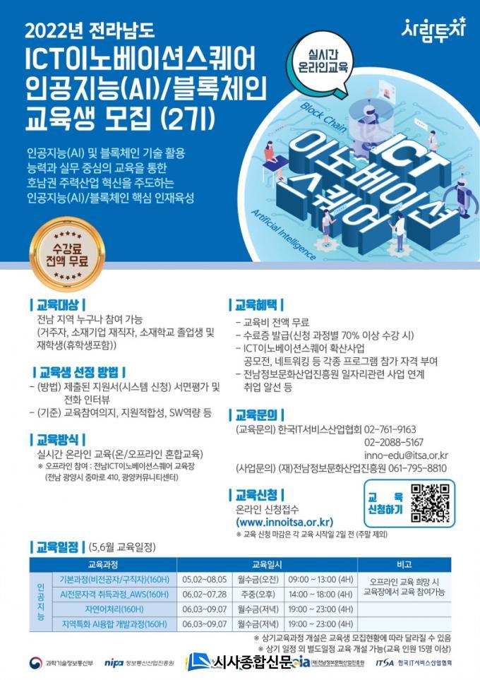 ±³À°ºñ´Â Àü¾× ¹«·áÀ̰í Àü³²µµ¹ÎÀÌ¸é ´©±¸³ª Àü³²ICTÀ̳뺣À̼ǽºÄù¾î »çÀÌÆ®(www.innoitsa.or.kr)¸¦ ÅëÇØ ½ÅûÇÒ ¼ö ÀÖÀ¸¸ç, ¼ö·áÀÚ´Â Ãë¾÷ ¿¬°èµµ Áö¿øÇÑ´Ù.