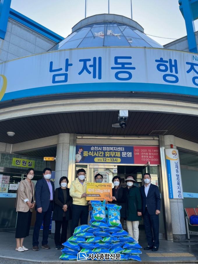 [½Ã»çÁ¾ÇսŹ® = Àå¹Î±Ô ±âÀÚ] ¼øÃµ¼º³²±³È¸(´ãÀÓ¸ñ»ç À̾ȽÄ)´Â Áö³ 8ÀÏ ÀÌ¿ô»ç¶û ³ª´®À» ½ÇõÇϰíÀÚ ³²Á¦µ¿ ÇàÁ¤º¹Áö¼¾ÅÍ¿¡ 120¸¸¿ø »ó´çÀÇ ¹é¹Ì 10kg 30Æ÷¸¦ ±âºÎÇÏ¿´´Ù.