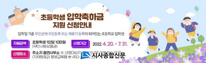 | ¹«¾È±º, ÃʵîÇлý ÀÔÇÐÃàÇÏ±Ý 4¿ù 20ÀϺÎÅÍ ½Åû Á¢¼ö 1ÀÎ 10¸¸¿ø »ó´ç ¹«¾È»ç¶û »óǰ±Ç Áö±Þ, À¾¸é»ç¹«¼Ò¿¡¼ ½Åû |