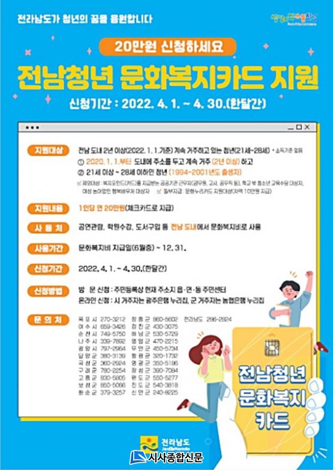 ¹®Èº¹ÁöÄ«µå Áö¿øÀº µµ³» û³â ÀÏÀÚ¸®, ÁÖ°Å Áö¿ø°ú ´õºÒ¾î û³âÃþÀÌ °¡Àå ¼±È£ÇÏ´Â ¹®È»ýȰ°ú ÀÚ±â°è¹ß ±âȸ Á¦°øÀ» À§ÇØ ¹®Èº¹Áöºñ(Æ÷ÀÎÆ®)¸¦ Áö¿øÇÏ´Â Àü¶ó³²µµ ½Å±Ô »ç¾÷ÀÌ´Ù.