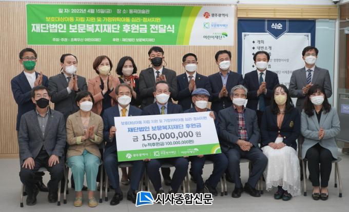 Àç´Ü¹ýÀÎ º¸¹®º¹ÁöÀç´ÜÀº 2021³â ÃÊ·Ï¿ì»ê¾î¸°ÀÌÀç´Ü ±¤ÁÖÁö¿ªº»ºÎ¿¡¼ ÁøÇàÇÑ º¸È£´ë»ó¾Æµ¿ ÀÚ¸³Áö¿ø»ç¾÷ ¡®±¤ÁÖÇü »ç°¢Áö´ë¾ø´Â ÀÚ¸³ÇÁ·ÎÁ§Æ®¡¯¿¡ 1¾ï¿øÀ» ÈÄ¿øÇÑ ÈÄ, ¿ÃÇØµµ °°Àº ±Ý¾×À¸·Î º¸È£´ë»ó¾Æµ¿ ÀÚ¸³Áö¿øÀ» Áö¼ÓÇß´Ù. ¶ÇÇÑ Ãß°¡ÀûÀ¸·Î °¡Á¤À§Å¹ º¸È£¾Æµ¿ÀÇ ¾ÈÁ¤ÀûÀΠģ°¡Á¤ º¹±Í¸¦ À§ÇÑ ½É¸®Á¤¼Áö¿ø¿¡ 5õ¸¸¿øÀ» ÈÄ¿øÇß´Ù.