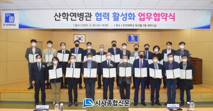 Áö³ 20ÀÏ Á¶¼±´ëÇб³ °ø°ú´ëÇÐ ÀÔ¼®È¦¿¡¼ ÁøÇàµÈ Çù¾à½Ä¿¡´Â Á¶¼±´ëÇб³ ¹Î¿µµ· ÃÑÀåÀ» ºñ·ÔÇØ ±¤ÁÖÅ×Å©³ëÆÄÅ© ±è¼±¹Î ¿øÀå, (Àç)±¤Áֱ׸°Ä«ÁøÈï¿ø ±è´ö¸ð ¿øÀå, Á¶¼±´ëÇб³ ±è°æÁ¾ º´¿øÀå, Á¶¼±´ëÇб³ ¼Õ¹Ì°æ Ä¡°úº´¿øÀå, Á¶¼±´ëÇб³ ÃÖÇÑö »êÇÐÇù·Â´ÜÀå, ±Ç¹Î±â ºÎ´ÜÀå, ÀÌÁØ½Ä ºÎóÀå µî °¢ ±â°üÀÇ ±â°üÀå°ú ¼¼¹æ¸®Æ¬¹èÅ͸® ¿Ü 11°³ »ê¾÷ü ´ëÇ¥ÀÌ»ç, 11°³ Æ¯ÈºÐ¾ß ¿¬±¸´Ü ´ÜÀå ¹× ºÎ´ÜÀå µîÀÌ Âü¼®Çß´Ù.