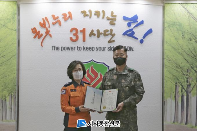 À̳¯ ÃÖ¼ø°Ç Á¦31º¸º´»ç´ÜÀå(À°±º¼ÒÀå)À¸·ÎºÎÅÍ °í¹ÎÀÚ ±¤ÁÖ¼Ò¹æ¾ÈÀüº»ºÎÀåÀº °¨»çÀåÀ», ¼Û¹Î¿µ 119Ư¼ö±¸Á¶´ÜÀåÀº ǥâÀåÀ» ¹Þ¾Ò´Ù.