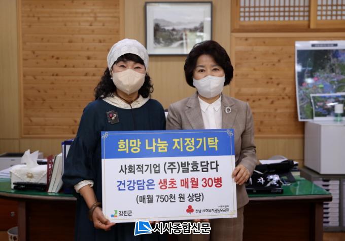 °Áø±ºÀº Áö³ 22ÀÏ »çȸÀû±â¾÷ ÇϳªÀÇÁ¤¿ø ¢ß¹ßÈ¿´ã´Ù(´ëÇ¥ ±èÇϳª)´Â °Áø±º »çȸº¹Áö½Ã¼³¿¡ Àü´ÞÇØ ´Þ¶ó¸ç 75¸¸ ¿ø »ó´çÀÇ µ¿¹é²É »ýÃÊ(1§¤µéÀÌ) 30º´À» °Áø±º¿¡ ±âŹÇß´Ù.