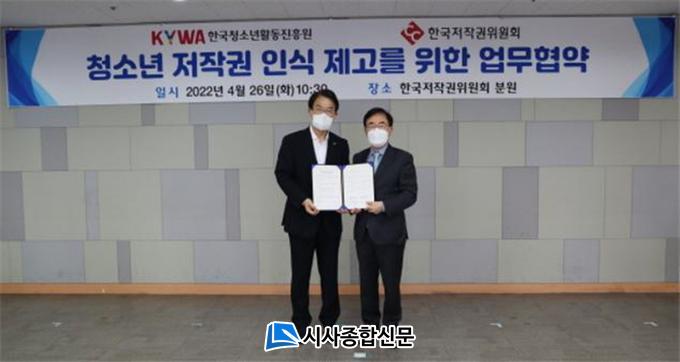 | Çѱ¹Ã»¼Ò³âȰµ¿ÁøÈï¿ø, Çѱ¹ÀúÀÛ±ÇÀ§¿øÈ¸¿Í ¾÷¹«Çù¾à ü°á û¼Ò³âÀÇ ÀúÀÛ±Ç ÀÎ½Ä Á¦°í ¹× ¾ç ±â°üÀÇ °øµ¿¹ßÀüÀ» À§ÇØ Çù·Â °È |