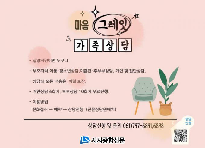 »ó´ã ½ÅûÀº ÀüÈ Á¢¼ö(¢Ï061-797-6891, 6898)¸¦ ÅëÇØ °¡´ÉÇϸç, »ó´ãÀº ¹«·á·Î Àü¹®»ó´ã»ç¿Í ÁøÇàµÈ´Ù. ¾ÕÀ¸·Îµµ ±¤¾ç½Ã °¡Á·¼¾ÅÍ´Â °¡Á·»ó´ã »ç¾÷À» ÅëÇØ ±¤¾ç½Ã¹ÎÀÌ °¡Á·ÀÇ ±â´ÉÀ» ȸº¹Çϰí À§±â¸¦ ¿¹¹æÇϸç, °Ç°ÇÑ °¡Á·¹®È¸¦ ¸¸µéµµ·Ï ²ÙÁØÈ÷ Áö¿øÇÒ ¿¹Á¤ÀÌ´Ù.