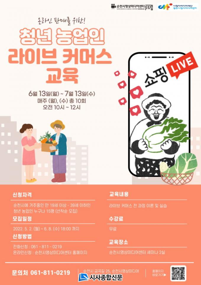 ¼øÃµ½Ã¿µ»ó¹Ìµð¾î¼¾ÅÍ´Â 5¿ù 2ÀϺÎÅÍ 6¿ù 8ÀϱîÁö ¼øÃµ½Ã °ÅÁÖ 39¼¼ ÀÌÇÏ Ã»³â³ó¾÷ÀÎ 15¸íÀ» ¼±Âø¼ø ¸ðÁýÇÏ¿©, ¸ÅÁÖ ¿ù¡¤¼ö¿äÀÏ ÃÑ 10ȸ¿¡ °ÉÃÄ ¹«·á·Î ±³À°À» ÁøÇàÇÒ °èȹÀÌ´Ù.