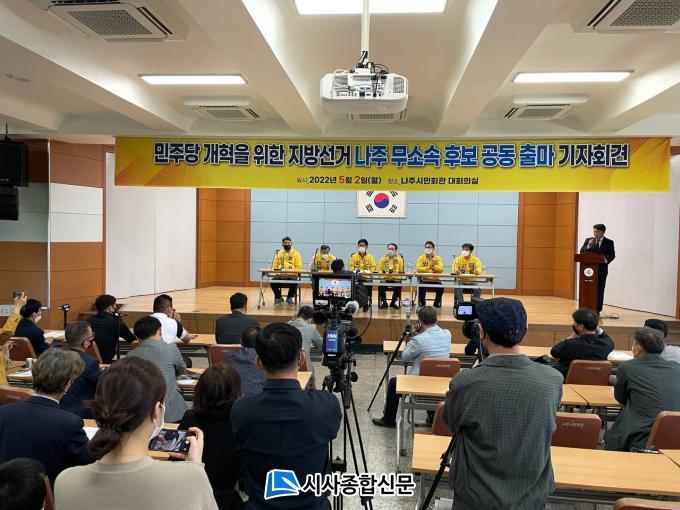 ¿À´Ã ±âÀÚȸ°ß¿¡ Âü¿©ÇÑ ¿¹ºñÈ帴 ÃÑ 6¸íÀ¸·Î °ÀÎ±Ô ³ªÁÖ½ÃÀå ¿¹ºñÈĺ¸¿Í ±è¼±¿ë µµÀÇ¿ø ¿¹ºñÈĺ¸, ±èÀåÁÖ, À̱¤¼®, ÀÓä¼ö, ȲÁ¤Çå ½ÃÀÇ¿ø ¿¹ºñÈ帴 ¡°¹ÎÁÖ´çÀ» °³ÇõÇϰí, Áö¿ª Á¤Ä¡¸¦ ¹Ù²Ù°Ú´Ù´Â ½Å³äÀ¸·Î ÇൿÇÏ´Â ¾ç½ÉÀÌ µÇ°Ú´Ù¡±°í ¼±¾ðÇÏ¿´´Ù.