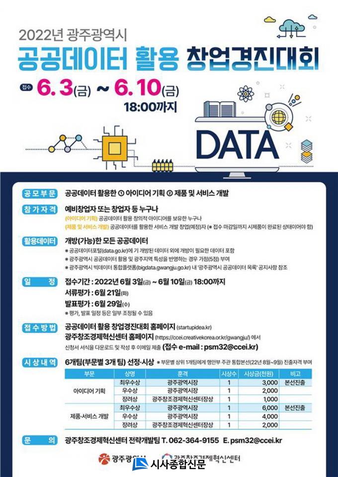 ±¤Áֽô ¼·ù ¹× ¹ßÇ¥Æò°¡¸¦ °ÅÃÄ 6¿ù Áß ÃÖÁ¾ 6°³ÀÇ ¿ì¼öÀÛÀ» ¼±Á¤ÇÏ°í ±¤ÁÖ±¤¿ª½ÃÀå»ó µî°ú ÇÔ²² ÃÑ 1800¸¸¿øÀÇ »ó±ÝÀ» ¼ö¿©ÇÒ ¿¹Á¤ÀÌ´Ù. ¶Ç ¿ì¼öÀÛ Áß ºÎ¹®º° ÃÖ¿ì¼öÀÛ 2°ÇÀº ±¤ÁÖâÁ¶°æÁ¦Çõ½Å¼¾ÅÍÀÇ Ã¢¾÷ ¸àÅ丵 Áö¿øÀ» ¹ÞÀ» ¼ö ÀÖÀ¸¸ç, ±¤ÁÖ±¤¿ª½Ã ´ëÇ¥·Î ÇàÁ¤¾ÈÀüºÎ ¡®Á¦10ȸ ¹üÁ¤ºÎ °ø°øµ¥ÀÌÅÍ È°¿ë â¾÷°æÁø´ëȸ¡¯ ÅëÇÕº»¼±¿¡ Âü¿©ÇÏ°Ô µÈ´Ù.