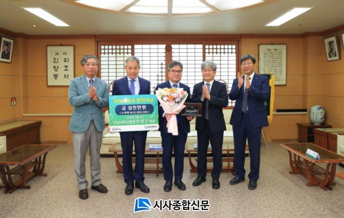¾È¿µ±Ù Àü³²´ëº´¿øÀåÀº À̳¯ Á¤¼ºÅà ÃÑÀå¿¡°Ô ¹ßÀü±â±ÝÀ» Àü´ÞÇÏ¸é¼ ¡°ÇлýµéÀÌ ²ÞÀ» ÆîÄ¥ ¼ö ÀÖ´Â Çб³¸¦ ¸¸µé¾îÁÖ±æ ±³Á÷¿øµé²² ºÎʵ叮°í, ÀÌ ±âºÎ°¡ ¹Ì·ÂÇϳª¸¶ ±× ¿øµ¿·ÂÀÌ µÆÀ¸¸é ÇÑ´Ù.¡±¸ç ¡°¼¼°è 100À§ ¾È¿¡ µå´Â Àü³²´ë°¡ µÇ±â¸¦ ¹Ù¶ó¸ç, ¶Ç ÃæºÐÈ÷ °¡´ÉÇϸ®¶ó°í º»´Ù.¡±°í ¸»Çß´Ù.
