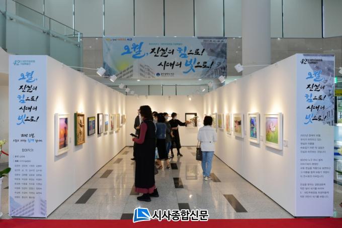 ¼±¸´Â ±× ½ÃÀÛÀ¸·Î 11ÀÏ ºÎ¼Àå±Þ ÀÌ»ó °£ºÎ°ø¹«¿øµéÀÌ 5¡¤18 ¹ÎÁÖ¹¦¿ªÀ» Âü¹èÇÑ´Ù. ¿À´Â 24ÀϱîÁö´Â û»ç 1Ãþ ·Îºñ¿¡ 5¡¤18 ´ç½ÃÀÇ ¾ÆÇÄÀ» ¿¹¼ú·Î ½ÂȽÃŲ ¼ø¼ö¹Ì¼ú ÀÛǰ µîÀ» ¸¸³¯ ¼ö Àִ¡®80³â 5¿ù, ¿À´Ãµµ ¿ì¸®´Â ÇÔ²² ÇÕ´Ï´Ù. Ưº°Àü¡¯À» ¸¶·ÃÇÏ¿© ¼±¸¹Ì¼úÇùȸ ÀÛ°¡ µî 30¿© ¸íÀÇ È¸È¿Í Á¶°¢ ÀÛǰÀ» Àü½ÃÇÑ´Ù.