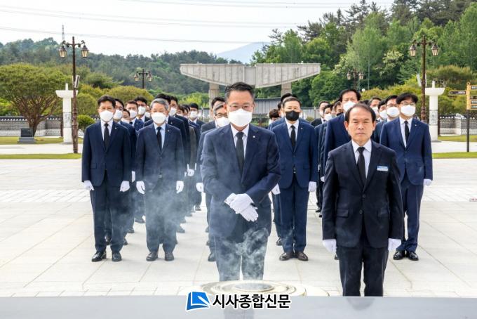 [½Ã»çÁ¾ÇսŹ® = ¿À½ÂÅà ±âÀÚ] ¼ÛÁ¾¿í ±¤ÁÖÀºÇàÀå°ú ÀÓÁ÷¿øÀº 5¡¤18 ±¤ÁÖ¹ÎÁÖȿ 42ÁÖ³âÀ» ¸Â¾Æ ±¹¸³5¡¤18¹ÎÁÖ¹¦Áö¸¦ Âü¹èÇÏ¸ç ¹ÎÁÖ¿µ·ÉµéÀ» Ã߸ðÇϰí, ¹ÎÁÖȿÀÇ ¼þ°íÇÑ Èñ»ýÁ¤½ÅÀ» ±â·È´Ù.