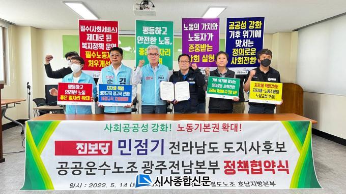 [½Ã»çÁ¾ÇսŹ® = ¿À½ÂÅà ±âÀÚ] Áøº¸´ç ¹ÎÁ¡±â µµÁö»ç Èĺ¸¿Í °ø°ø¿î¼ö³ëÁ¶ ±¤ÁÖÀü³²Áö¿ªº»ºÎ´Â 14ÀÏ Ã¶µµ³ëÁ¶ È£³²Áö¹æº»ºÎ »ç¹«½Ç¿¡¼ Á¤Ã¥Çù¾à½ÄÀ» °³ÃÖÇß´Ù.