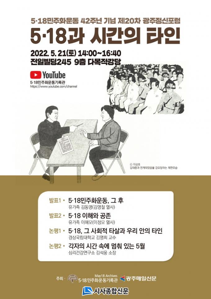 ¡®5¡¤18°ú ½Ã°£ÀÇ Å¸ÀΡ¯À̶ó´Â ÁÖÁ¦·Î ¿¸®´Â À̹ø Æ÷·³Àº 1ºÎ¿¡¼´Â ¡®5¡¤18 Áõ¾ð¡¯À̶ó´Â Á¦¸ñÀ¸·Î ±èµ¿¸í ¾¾(±è¿µÃ¶ ¿»ç µ¿»ý)¿Í ÀÌÇØ¸ð ¾¾(ÀÌÁ¤¸ð ¿»ç µ¿»ý¡¤±¤ÁÖÀü³²ºÒ±³È¯°æ¿¬´ë»ç¹«ÃÑÀå)°¡ ¡®5‧18 ÀÌÇØÈ °øÁ¸-¡®À̸§¾øÀÌ Á׾ ºê·ÎÅ©°ø, ¿À¿ù½Ã¹Î±º ÀÌÁ¤¸ð »ý¾Ö»ç¡¯¸¦ Á¤¸®Çϸ硯¸¦ ¹ßÇ¥ÇÑ´Ù.