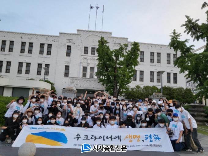 ±¤ÁÖ YAG ¼Ò¼Ó ±³»ç¿Í ÇлýµéÀº 5¡¤18 ±¤ÁÖ¹ÎÁÖȿ 42Áֱ⸦ ±â³äÇØ ¹ÎÁÖ¿Í ÆòÈ¡¤¿¬´ëÀÇ 5¡¤18 Á¤½ÅÀ» üÇèÇÒ ¼ö ÀÖ´Â ¿À¿ù±æ(ȶºÒ ÄÚ½º)À» °É¾ú´Ù. ¿ìÅ©¶óÀ̳ª ÀüÀï Áߴܰú ¿ìÅ©¶óÀ̳ª¿¡ »ý¸í°ú Æòȸ¦ ±â¿øÇÏ´Â ÀÛÁö¸¸ ÀÇ¹Ì ÀÖ´Â ÇൿÀ» ½ÇõÇÑ °ÍÀÌ´Ù.