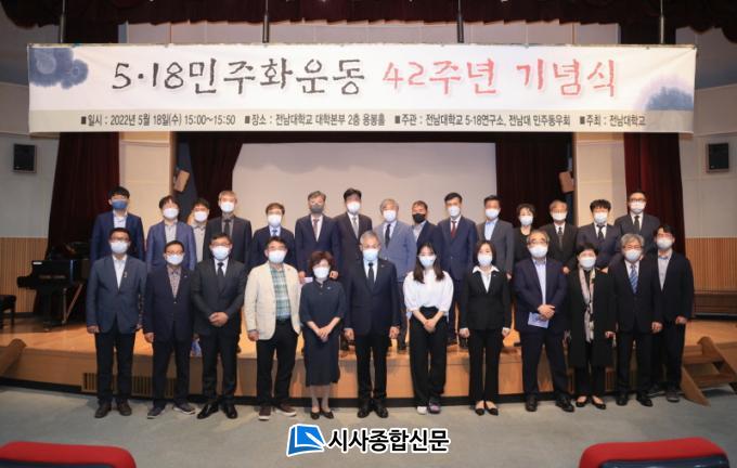 Àü³²´ë 5.18¿¬±¸¼Ò(¼ÒÀå ÃÖÁ¤±â)¿Í Àü³²´ë ¹ÎÁÖµ¿¿ìȸ(°øµ¿È¸Àå ÃÖÀº±â, ±èÁ¤Èñ)°¡ °øµ¿ÁÖ°üÇÑ À̳¯ ±â³ä½ÄÀº ¿ÀÈÄ 3½Ã ´ëÇк»ºÎ ¿ëºÀȦ¿¡¼ Á¤¼ºÅà ÃÑÀå°ú ÇÑÀº¹Ì ±³¼öÆòÀÇȸ ÀÇÀåÀ» ºñ·ÔÇÑ ±³Á÷¿ø°ú Ãѵ¿Ã¢È¸ ÃÖÈñµ¿ »óÀÓºÎȸÀå°ú °ü°èÀÚ, ¹ÎÁÖµ¿¿ìȸ, ±èÇöÁö Çлýºñ»ó´ëÃ¥À§¿øÀå µî 200¿© ¸íÀÌ Âü¼®ÇÑ °¡¿îµ¥ ¾ö¼öµÆ´Ù.