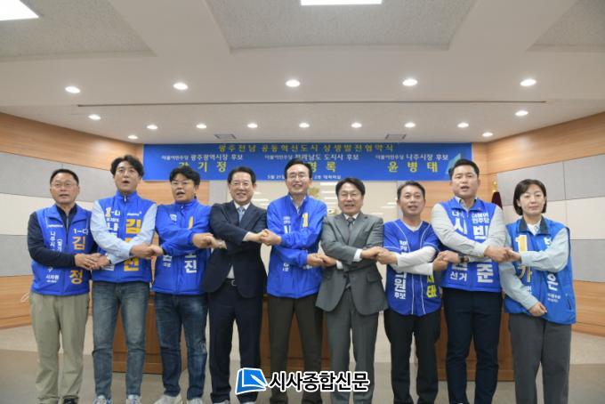 Áö³ 16ÀÏ ° Èĺ¸¿Í Àü³²¡¤±¤ÁÖ »ó»ý¹ßÀüÀ» À§ÇÑ Çù¾à¿¡ ÀÌÀº ÀÕ´Ü °øµ¿ »ó»ý ¹ß°ÉÀ½ÀÌ´Ù. ±è È帴 À̳¯ ³ªÁÖ ³²Æò³óÇù ´ëȸÀǽǿ¡¼ À̵é Èĺ¸¿Í ¡®Àü³²¡¤±¤ÁÖ¡¤ºû°¡¶÷Çõ½Åµµ½Ã »ó»ýÁ¤Ã¥Çù¾à¡¯À» ¸Î¾ú´Ù.