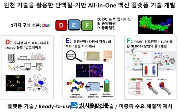 ¶ÇÇÑ, ÀçÁ¶ÇÕ ´Ü¹éÁú ±â¼ú ³ëÇϿ츦 Á¢¸ñÇØ ¼öÁö»ó ¼¼Æ÷ ³»·Î ¹é½ÅÇ׿ø°ú ÇöóÁ©¸° ¸é¿ªÁõ°Á¦¸¦ µ¿½Ã¿¡ µµÀÔÇØ TLR5 ¹× NLRC4 ½Ã½ºÅÛÀ» µ¿½Ã¿¡ ÀÚ±ØÇÒ ¼ö ÀÖ´Â ¡®ÀÏüÇü ¹é½Å¡¯À» °³¹ßÇÏ°Ô µÆ´Ù.