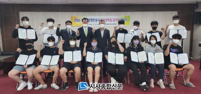 <»çÁø¼³¸í> 25ÀÏ ¿©¼öÇØ¾ç°úÇÐ°í¿¡¼ ÃÖ¿¬Ã¶ ¿©¼ö±¤¾çÇ׸¸°ø»ç ºÎ»çÀå(µÞÁÙ °¡¿îµ¥)ÀÌ ÀåÇÐ±Ý ¼ö¿©Çлý ¹× Çб³ °ü°èÀÚµé°ú ±â³äÃÔ¿µÀ» Çϰí ÀÖ´Ù