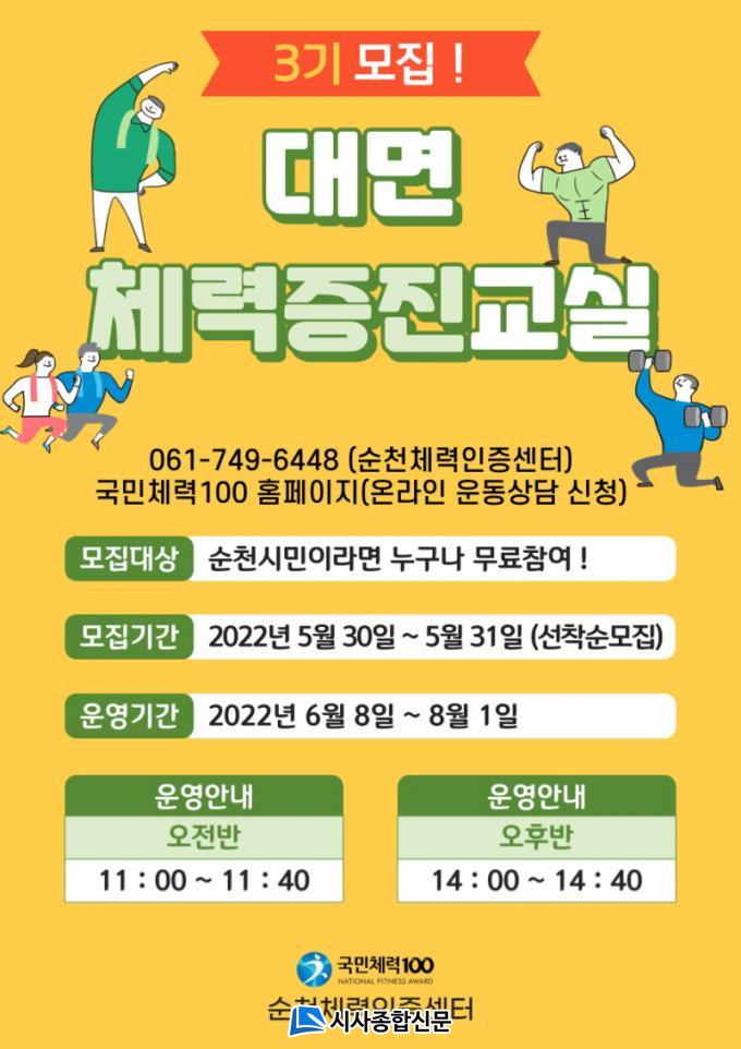 À̹ø ü·ÂÁõÁø±³½Ç 3±â´Â 6¿ù 8ÀϺÎÅÍ 8¿ù 1ÀϱîÁö 8ÁÖ°£ ¿ù¡¤¼ö¡¤±Ý ÁÖ 3ȸ ¿ÀÀü 11½Ã¿Í ¿ÀÈÄ 2½Ã, 2°³ ¹ÝÀ¸·Î ³ª´² 40ºÐ¾¿ ¿î¿µÇÒ ¿¹Á¤ÀÌ´Ù. ½Ã¹ÎµéÀÇ Ã¼·ÂÁõÁøÀ» À§ÇÑ ÇÁ·Î±×·¥»Ó¸¸ ¾Æ´Ï¶ó, Àü¹®°¡¸¦ ÅëÇÑ Ã¼·ÂÃøÁ¤, ¿ä°¡¼ö¾÷ µîÀ» ¿î¿µÇÒ °èȹÀÌ´Ù.