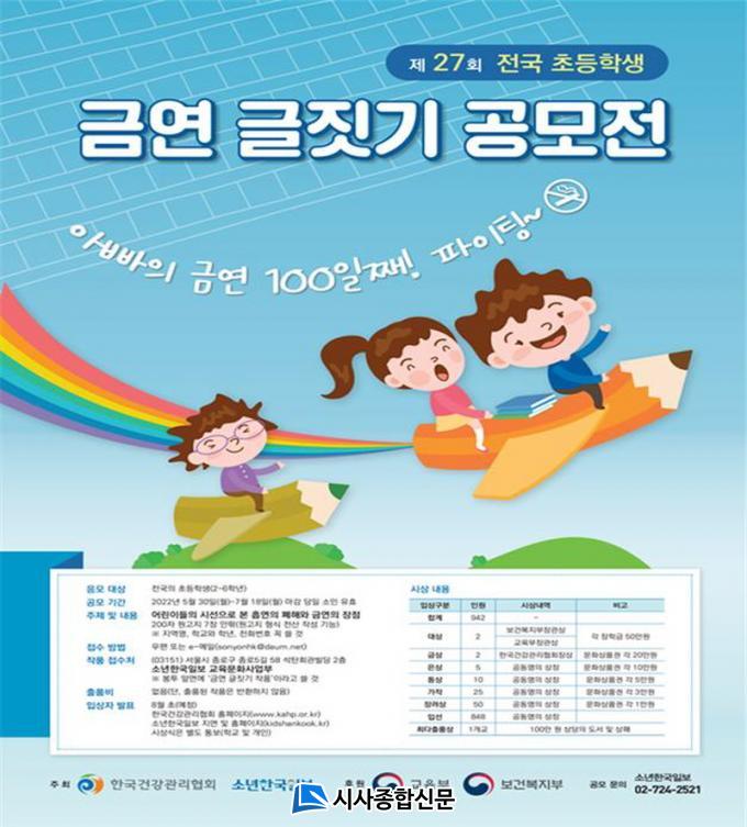°ø¸ðÀü Á¢¼ö´Â ¿À´Â 7¿ù 18ÀÏ(¿ù)±îÁö ÁøÇàµÇ¸ç ÃʵîÇб³ 2~6ÇгâÀÌ¸é ´©±¸³ª Âü¿©ÇÒ ¼ö ÀÖ´Ù. ÁÖÁ¦´Â ¾î¸°À̵éÀÇ ½Ã¼±À¸·Î º» Èí¿¬ÀÇ ÆóÇØ¿Í ±Ý¿¬ÀÇ ÀåÁ¡À» ÁÖÁ¦·Î ¡â»ç¶ûÇÏ´Â °¡Á·µéÀÇ ±Ý¿¬ ¼º°ø±â ¡â»ýȰ ¼Ó Èí¿¬(°£Á¢Èí¿¬)¿¡ ´ëÇØ º¸°í ´À³¤ Á¡ ¡â±Ý¿¬ Àüµµ»ç, °Ç° ÁöÅ´À̷μÀÇ °æÇè´ã ¡âÄڷγª¿Í ÇÔ²²ÇÏ´Â Àϻ󿡼ÀÇ Èí¿¬¿¹¹æ ¹× ±Ý¿¬ÀÇ Á߿伺 µî °Ç°»ýȰ ½ÇõÀ» À¯µµÇÒ ¼ö ÀÖ´Â ³»¿ëÀÌ¸é µÈ´Ù.