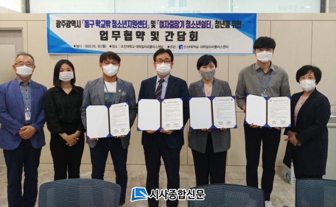 Áö³ 30ÀÏ Á¶¼±´ëÇб³ ´ëÇÐÀÏÀÚ¸®¼¾ÅÍÇ÷¯½º¼¾ÅÍ¿¡¼ ü°áµÈ Çù¾à½Ä¿¡´Â Á¶¼±´ëÇб³ ´ëÇÐÀÏÀÚ¸®Ç÷¯½º¼¾ÅÍ À±¿À³² ¼¾ÅÍÀåÀ» ºñ·ÔÇØ ±¤ÁÖ±¤¿ª½Ã µ¿±¸Çб³¹Ûû¼Ò³âÁö¿ø¼¾ÅÍ ´ã´çÀÚ, ±¤ÁÖ±¤¿ª½Ã ÁßÀå±â¿©ÀÚû¼Ò³â½°ÅÍ ´ã´çÀÚ°¡ Âü¼®ÇßÀ¸¸ç ÃÑ 10¿© ¸íÀÇ °ü°èÀÚµéÀÌ Âü¼®ÇÑ °¡¿îµ¥ ÁøÇàµÆ´Ù.