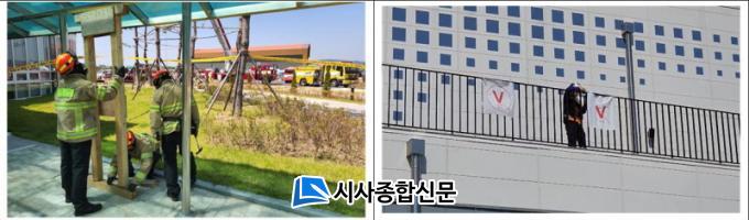 ƯÈ÷, À̹ø ÈÆ·Ã°£¿¡´Â ºÒ¾ÈÁ¤ÇÑ ±¸Á¶¹°¿¡ ÀÎÀ§ÀûÀ¸·Î ¸ñÀç, Àåºñ µîÀ» ÀÌ¿ëÇÏ¿© °íÁ¤ ¹× ÁöÁöÇÔÀ¸·Î½á ±¸Á¶´ë¿øÀÌ ¾ÈÀüÀ» À¯ÁöÇÏ¸é¼ ¿øÈ°ÇÑ ±¸Á¶È°µ¿À» ÇÒ ¼ö ÀÖµµ·Ï ÇÏ´Â ±¸Á¶¹° ¾ÈÁ¤È ±â¹ý Áß ÇϳªÀÎ ¡®ÀÌÁß TÀÚÇü ÁöÁÖ¡¯¸¦ ¼³Ä¡Çϰí, ±¹Á¦Å½»ö±¸Á¶ ÀÚ¹®´Ü(INSARAG)¿¡¼ »ç¿ëÇϴ ǥ½Äü°è¸¦ Ȱ¿ëÇÏ¿© ³»¡¤¿ÜºÎ ±¸¿ªÀ» ±¸ºÐÇÏ°í ±¸Á¶´ë»óÀÚ À§Ä¡¸¦ Ç¥½ÄÇÏ´Â µî ½ÇÁúÀûÀÎ ÈÆ·ÃÀ» ½Ç½ÃÇÏ¿© ´õ¿í Àǹ̰¡ ÄÇ´Ù.