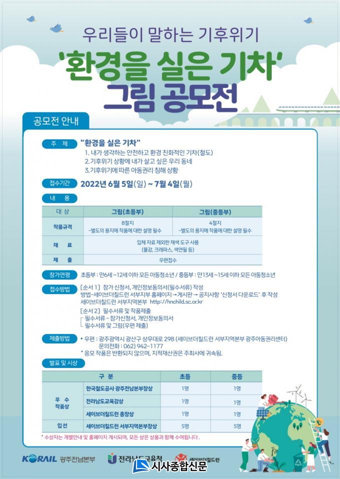 [½Ã»çÁ¾ÇսŹ® = ¿À½ÂÅà ±âÀÚ] Çѱ¹Ã¶µµ°ø»ç(ÄÚ·¹ÀÏ) ±¤ÁÖÀü³²º»ºÎ´Â ¡®È¯°æÀdz¯¡¯ÀÎ 6¿ù 5ÀϺÎÅÍ 7¿ù 4ÀϱîÁö, Àü³²µµ³» ¸¸ 6¼¼¿¡¼ 15¼¼ ÀÌÇÏ ¾Æµ¿¡¤Ã»¼Ò³âÀ» ´ë»óÀ¸·Î ¡®È¯°æÀ» ½ÇÀº ±âÂ÷¡¯ ±×¸² °ø¸ðÀüÀ» °³ÃÖÇÑ´Ù°í ¹àÇû´Ù.