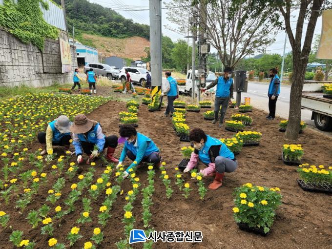 Áö³ 8ÀÏ, º½ Çâ±â¸¦ ¹°¾À dz±â´ø °÷¿¡ ½Ã¹Î¿¡°Ô Ȱ±âÂù ¿©¸§ ±â¿îÀ» ºÏµ¸¾Æ ÁÖ±â À§ÇØ 10¸íÀÇ È¸¿øÀÌ ¹Ù»Û ³ó¹ø±â¿¡µµ ²É ½É±â¿¡ ÇÔ²²Çß´Ù. ȸ¿øµéÀº ³ë¶õ»ö ¸¶¸®°ñµå 2õ¿© º»À» °øÅÍ¿¡ ½É°í µ¿½Ã¿¡ ÁÖº¯ ÀâÃÊ Á¦°Å, µµ·Îº¯ ¾²·¹±â ÁÝ±â µî ±ú²ýÇÑ °æ°ü ¸¸µé±â¿¡ ¾ÆÄ§ºÎÅÍ ±¸½½¶¡À» Èê·È´Ù.