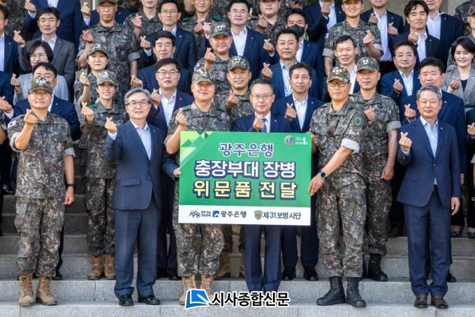 ÀÌ ÀÚ¸®¿¡¼ Á¦31º¸º´»ç´ÜÀº ¼ÛÁ¾¿í ±¤ÁÖÀºÇàÀå¿¡°Ô °¨»çÆÐ¸¦ Àü´ÞÇϸç, ±¤ÁÖÀºÇàÀÇ Á¤±âÀûÀÎ À§¹® ¹æ¹® ¹× À§¹®±Ý Àü´Þ°ú ±ÝÀ¶ ¿ì´ë ¼ºñ½º Á¦°ø µîÀ¸·Î ±ºÀ庴µéÀÇ »ç±â ÁøÀÛ¿¡ ±â¿©ÇÑ °ø·Î¿¡ °¨»çÇÔÀ» ÀüÇß´Ù.