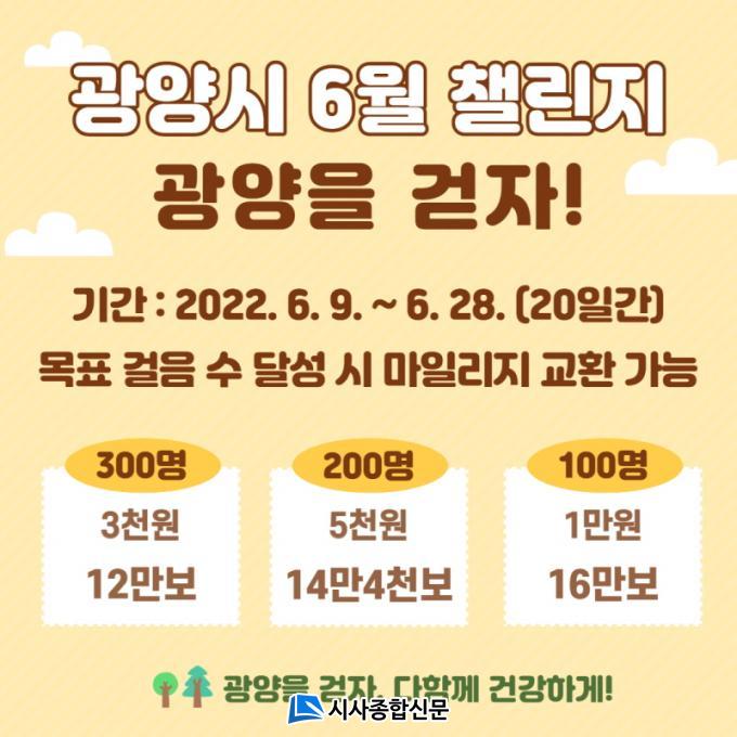 ÇöÀç ±¤¾ç½Ã °ø½Ä Ä¿¹Â´ÏƼ °¡ÀÔÀÚ ¼ö´Â ½Ã¹ÎµéÀÇ Àû±ØÀûÀÎ Âü¿©·Î 7,000¸íÀ» ÃʰúÇØ °Ç°°È±â°¡ Ȱ¹ßÇÏ°Ô ¿î¿µµÇ°í ÀÖ´Ù. À̹ø 縰Áö´Â ¸ñÇ¥¸¦ 3´Ü°è·Î ¼³Á¤ÇØ 12¸¸ º¸ ´Þ¼ºÀº 3õ ¿ø±Ç, 14¸¸ 4õ º¸ ´Þ¼ºÀº 5õ ¿ø±Ç, 16¸¸ º¸ ´Þ¼ºÀº 1¸¸ ¿ø±Ç µî 600¸í¿¡°Ô Áö±ÞÇÑ´Ù.