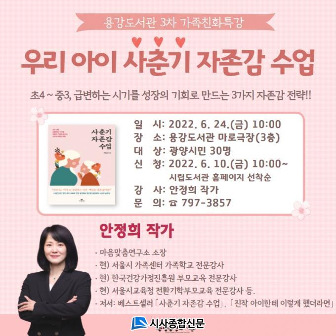 À̹ø °¿¬Àº º£½ºÆ®¼¿·¯ ¡¸»çÃá±â ÀÚÁ¸°¨ ¼ö¾÷¡¹ÀÇ ÀúÀÚÀÌÀÚ ºÎ¸ð ±³À° Àü¹®°¡ÀÎ ¾ÈÁ¤Èñ ÀÛ°¡¸¦ ÃÊÃ»ÇØ ´ë¸é °¿¬À¸·Î ¿î¿µÇϸç, Âü¿©ÀÚ°¡ ¾ÈÀüÇÑ È¯°æ¿¡¼ °¿¬¿¡ Âü¿©ÇÒ ¼ö ÀÖµµ·Ï °ÀÇ½Ç ¼Òµ¶°ú ȯ±â µî ¹æ¿ª¼öÄ¢À» öÀúÈ÷ ÁöŰ¸ç ¿î¿µÇÒ ¿¹Á¤ÀÌ´Ù.