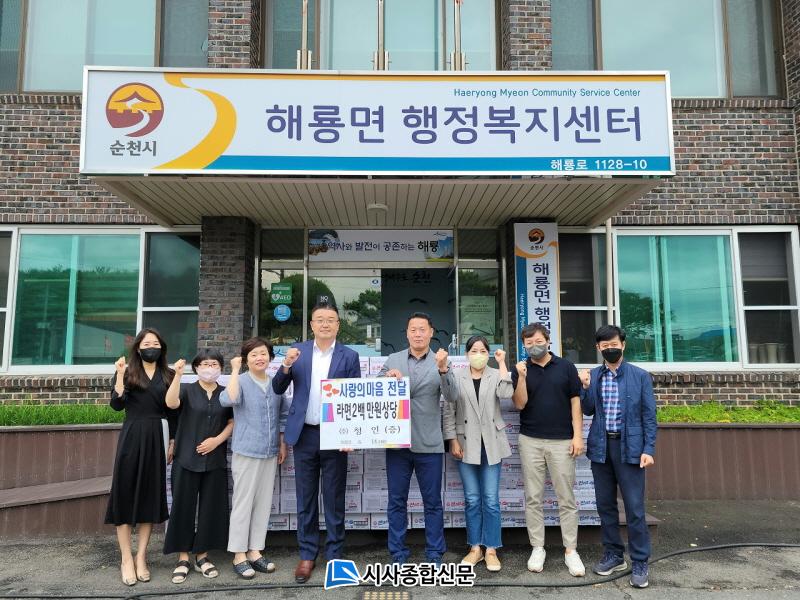 [½Ã»çÁ¾ÇսŹ® = Àå¹Î±Ô ±âÀÚ] ¼øÃµ½Ã ÇØ·æ¸é ¼ÒÀç ±â¾÷ ¢ßûÀÎ(´ëÇ¥ ¼Û¿ëÁø)ÀÌ Áö¿ª ¾î·Á¿î ÀÌ¿ôÀ» À§ÇØ 14ÀÏ ¶ó¸é 200¹Ú½º¸¦ ÇØ·æ¸é¿¡ ±âŹÇß´Ù. ±âŹµÈ ¶ó¸é 200¹Ú½º´Â ÇØ·æ¸é Áö¿ª µ¶°Å³ëÀΰú Ãë¾à°èÃþ, º¹Áö »ç°¢Áö´ë ´ë»óÀڵ鿡°Ô Àü´ÞµÉ ¿¹Á¤ÀÌ´Ù.
