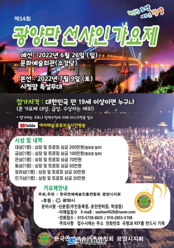 [½Ã»çÁ¾ÇսŹ® = Àå¹Î±Ô ±âÀÚ] (»ç)Çѱ¹¿¬¿¹¿¹¼úÀÎÃÑ¿¬ÇÕȸ ±¤¾ç½ÃÁöȸ°¡ ÁÖ°üÇÏ´Â ¡®Á¦14ȸ ±¤¾ç¸¸ ¼±»þÀÎ °¡¿äÁ¦¡¯°¡ ¿À´Â 7¿ù 9ÀÏ Åä¿äÀÏ ¿ÀÈÄ 6½Ã ±¤¾ç½Ãû ¾Õ ¾ß¿Ü°ø¿¬Àå¿¡¼ °³ÃֵȴÙ.