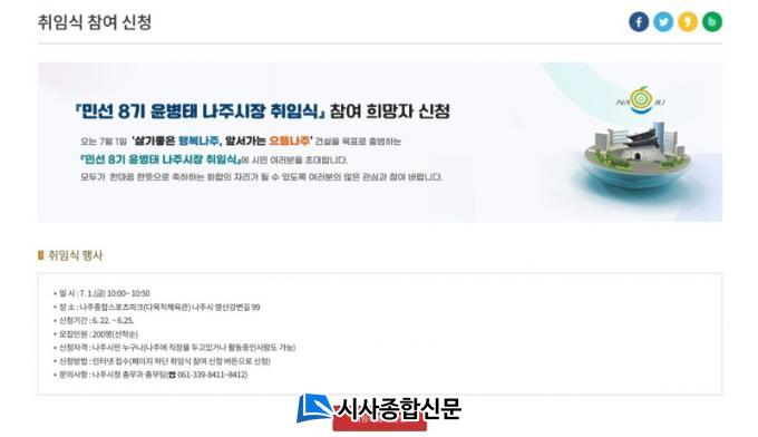 ¿©¼º±¸ ³ªÁÖ½ÃÀåÁ÷ ÀμöÀ§¿øÀåÀº ¡°12¸¸ ½Ã¹ÎÀÇ ±â´ë¸¦ ´ã¾Æ Äڷγª19ÀÇ ±ä ÅͳÎÀ» Áö³ª ¼ÒÅë°ú ÈÇÕÀ» ÃÖ¿ì¼±ÀÇ °¡Ä¡·Î ¡®´õ Å« ³ªÁÖ, ³ªÁÖ ´ëÀüȯ¡¯ÀÇ Ã»»çÁøÀ» ¹àÈ÷´Â ÃëÀÓ½ÄÀÌ µÉ °Í¡±À̶ó¸ç ¡°¹Î¼± 8±â ½ÃÁ¤ÀÇ Ã¹ ¹ß°ÉÀ½À» ³»µó´Â ¶æ±íÀº ÀÚ¸®¿¡ ¸¹Àº ½Ã¹ÎµéÀÇ °ü½É°ú Âü¿©¸¦ ºÎʵ台´Ù¡±°í ¹àÇû´Ù.