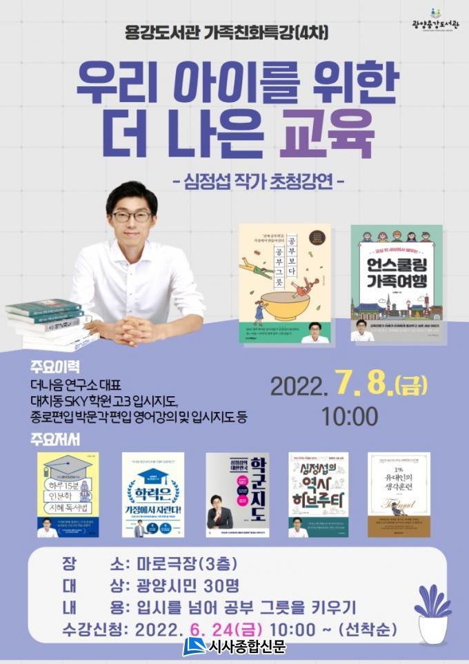 Âü¿©ÀÚ ½ÅûÀº 6¿ù 27ÀÏ ¿ÀÀü 10½ÃºÎÅÍ ½Ã¸³µµ¼°ü ȨÆäÀÌÁö¸¦ ÅëÇØ °¡´ÉÇϰí, ¼ö° ½Åû°ú ´Ù¸¥ ±Ã±ÝÇÑ »çÇ×Àº ±¤¾ç½Ã¸³µµ¼°ü ȨÆäÀÌÁö(lib.gwangyang.go.kr)¸¦ ¹æ¹®Çϰųª ±¤¾ç¿ë°µµ¼°ü(¢Ï061-797-3857)À¸·Î ¹®ÀÇÇϸé ÀÚ¼¼È÷ ¾È³»¹ÞÀ» ¼ö ÀÖ´Ù.