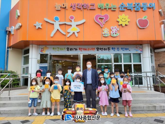 ¼øÃµºÏÀ¯Ä¡¿ø 61¸íÀÇ ¿ø¾ÆµéÀº Á÷Á¢ ¹°Ç°À» ÁغñÇÏ¿© ¡®³ª´¼ö·Ï ÇູÇÑ ¾Ë¶ã½ÃÀ塯À» ¿¾î ¸¶·ÃÇÑ ¼öÀͱÝÀ» Áö¿ª ¾î¸£½ÅµéÀ» À§ÇØ »ç¿ëÇϱâ·Î °áÁ¤Çϰí, ½Ò 10kg 7Æ÷(27¸¸¿ø »ó´ç)¸¦ ¸Å°îµ¿ÇàÁ¤º¹Áö¼¾ÅÍ¿¡ ±âŹÇÏ¿´´Ù.
