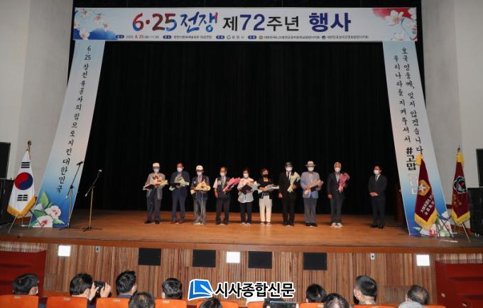À̳¯Àº 6¡¤25ÀüÀï Á¦72ÁÖ³âÀ» ¸Â¾Æ ±è°æÈ£ ºÎ½ÃÀå, ¹®¾ç¿À ±¤¾ç½ÃÀÇȸºÎÀÇÀå, µµ¡¤½ÃÀÇ¿ø, µµ¡¤½ÃÀÇ¿ø(´ç¼±ÀÎ), 6.25 ÂüÀü¿ë»ç¿Í º¸ÈÆ´ÜüÀå, ±â°ü¡¤»çȸ ´ÜüÀå µî ³»¿Üºó 200¸íÀÌ Âü¼®ÇÑ °¡¿îµ¥ 6¡¤25ÀüÀïÀÇ Àǹ̸¦ µÇ»õ±â°í ³ª¶ó¸¦ À§ÇØ Çå½ÅÇÑ ÂüÀü¿ë»çÀÇ ¼þ°íÇÑ Èñ»ýÁ¤½ÅÀ» ±â¸®±â À§ÇÑ ½Ã°£À¸·Î ¸¶·ÃµÆ´Ù.
