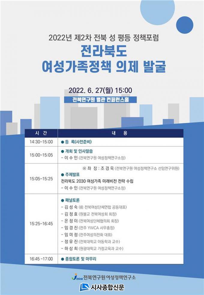À̳¯ ¹ßÁ¦ÀÚ·Î ³ª¼± À̼öÀÎ(ÀüºÏ¿©¼ºÁ¤Ã¥¿¬±¸¼Ò ¼ÒÀå)Àº ÀüºÏÀÇ Á¾ÇÕÀûÀ̰í ÁßÀå±âÀûÀÎ ¿©¼º ¹× °¡Á·Á¤Ã¥ÀÇ ºñÀü ¹× Àü·«°ú Á¤Ã¥°úÁ¦ µîÀ» ¼ö¸³ÇÑ¡®Àü¶óºÏµµ 2030 ¿©¼º․°¡Á· ¹Ì·¡ºñÀü Àü·«¼ö¸³(¥°․¥±)¡¯ÀÇ Çٽɳ»¿ëÀ» ¹ßÇ¥ÇÏ¿´À¸¸ç À̸¦ Åä´ë·Î ¿©¼º°èÀÇ ´Ù¾çÇÑ ÀǰßÀ» ¼ö·ÅÇÏ´Â ÀÚ¸®·Î ÁøÇàµÇ¾ú´Ù.