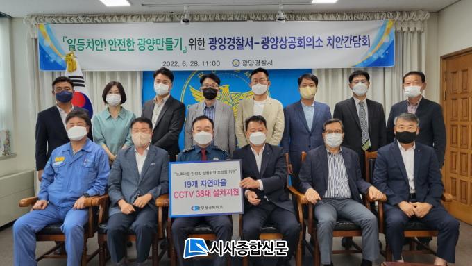 À̳¯ Ä¡¾È°£´ãȸ´Â ±¤¾ç»ó°øÈ¸ÀÇ¼Ò 19°³ ȸ¿ø»ç°¡ ±âŹÇÑ CCTV¼³Ä¡±â±ÝÀ» ±¤¾ç½ÃÀÌ¡¤ÅëÀ忬ÇÕȸ¿¡ Àü´ÞÇÏ´Â Àü´Þ½ÄÀ» °¡Áø µÚ, ³óÃ̸¶À» ¹üÁË¿¹¹æ ȯ°æ°³¼±À» À§ÇÑ ÅäÀÇ ¹× ¾Ö·Î»çÇ×À» ûÃëÇÏ´Â Çü½ÄÀ¸·Î ÁøÇàµÇ¾ú´Ù.