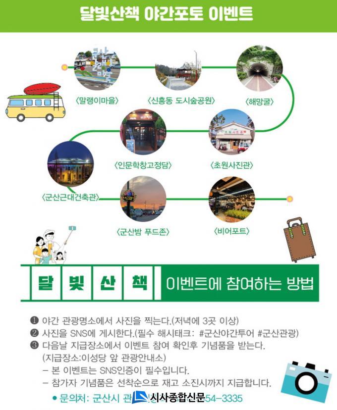 ÇÑÆí, ±º»ê½Ã °ü°èÀÚ´Â ¡°À̹ø À̺¥Æ®¸¦ ÅëÇØ ½Ã°£¿©ÇึÀ»ÀÇ ¾ß°£¸í¼Ò¸¦ ¾Ë¸± ¼ö ÀÖ´Â °³¼º ³ÑÄ¡´Â ´Ù¾çÇÑ »çÁøµéÀÌ SNS¿¡ ¸¹ÀÌ °Ô½ÃµÇ±æ ±â´ëÇÑ´Ù¸ç, Àú³á¿¡ ½Ã°£¿©ÇึÀ» °Å¸®¸¦ »êÃ¥ÇÏ¸ç ¿©ÇàÀÇ ÇǷθ¦ Ç®°í ¾ß°£°æ°üÀÌ ¸ÚÁø Àå¼Ò¿¡¼ »çÁøÀ» ÂïÀ¸¸ç Áñ°Å¿î Ãß¾ïÀ» ½×±â¸¦ ¹Ù¶õ´Ù¡±°í ÀüÇß´Ù.