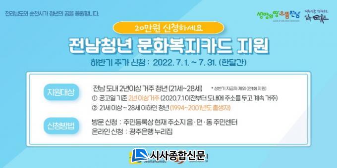Àü³²Ã»³â ¹®Èº¹ÁöÄ«µå Áö¿ø»ç¾÷Àº Áö¿ª ³» °ÅÁÖÇϴ û³âµé¿¡°Ô ¹®È»ýȰ ÇâÀ¯¿Í Àڱⰳ¹ßÀÇ ±âȸ¸¦ Á¦°øÇϱâ À§ÇØ 1ÀÎ´ç ¿¬ 20¸¸¿øÀÇ ¹®Èº¹Áöºñ¸¦ Áö¿øÇÏ´Â »ç¾÷ÀÌ´Ù.
