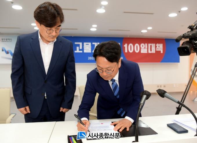° ½ÃÀåÀº ¡°¹°°¡, À¯°¡, ±Ý¸®ÀÇ »ïÁß°í¿¡ Ã³ÇØÀÖ´Â ½Ã¹Îµé¿¡°Ô Á¤ºÎÁ¤Ã¥¿¡¸¸ ÀÇÁ¸ÇÏÁö ¾Ê´Â ±¤ÁÖ¸¸ÀÇ ¸ÂÃãÇü ¹°°¡´ëÃ¥ÀÌ ÇÊ¿äÇÏ´Ù¡±¸ç ¡°À̹ø ¹Î»ý 100ÀÏ ´ëÃ¥Àº ¹°°¡¾ÈÁ¤, °æ¿µ¾ÈÁ¤, °æÁ¦À¯Áö°¡ ÇÙ½ÉÀÌ´Ù¡±°í °Á¶Çß´Ù.