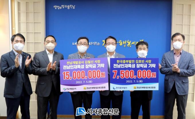 Àü³²ÀÎÀçÆò»ý±³À°ÁøÈï¿ø¿¡ µû¸£¸é Àü³²°³¹ß°ø»ç(»çÀå ±èö½Å)¿Í Çѱ¹ÁߺιßÀü(»çÀå ±èÈ£ºó)ÀÌ 5ÀÏ (Àç)Àü³²ÀÎÀçÆò»ý±³À°ÁøÈï¿ø¿¡ 2õ250¸¸ ¿øÀÇ ÀÎÀçÀ°¼º ÀåÇбâ±ÝÀ» ±âŹÇß´Ù.