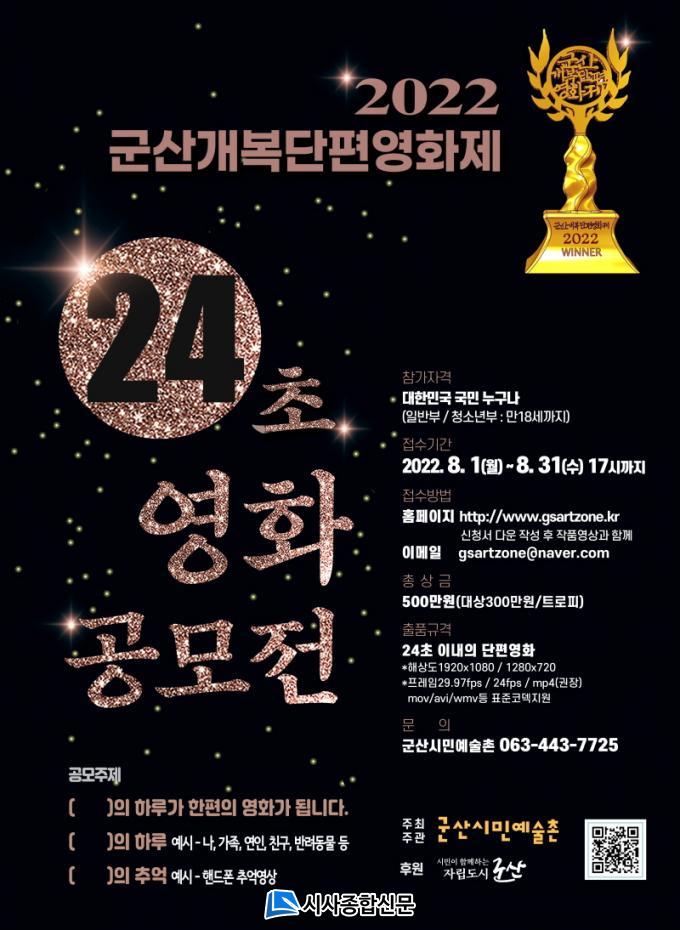 ¿À´Â 9¿ù 24ÀÏ 15~18½Ã ½Ç½ÃµÇ´Â Á¦3ȸ ±º»ê°³º¹ ´ÜÆí¿µÈÁ¦¸¦ °³ÃÖÇϱâ À§ÇØ À̹ø °ø¸ð¸¦ ½Ç½ÃÇÏ¸ç ¿µÈÁ¦´Â ±º»ê½Ã¹Î¿¹¼úÃÌ °ø¿¬Àå°ú ¾ß¿Ü µÚ¶ã¿¡¼ °³ÃÖÇÒ ¿¹Á¤ÀÌ´Ù.