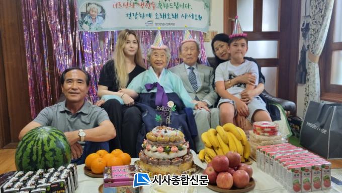 [½Ã»çÁ¾ÇսŹ® = ¿À½ÂÅà ±âÀÚ] »çȸº¹Áö¹ýÀÎ K-water ³ª´®º¹ÁöÀç´Ü(´ëÇ¥ÀÌ»ç ±èÁöÂù)¿¡¼ ¿î¿µÇÏ´Â ¼¶Áø°´ï³ëÀκ¹Áö°ü(°üÀå ÀÌÇØ°æ)Àº Áö³ 7¿ù 1ÀÏ, 93¼¼ »ýÀÏÀ» ¸ÂÀÌÇϽŠÀ̺¹³² ¾î¸£½Å (1930³â »ý)ÀÇ ±¸¼øÀ» ÃàÇϵ帮±â À§ÇØ ¾î¸£½Å ÀÚÅÿ¡¼ ¸¸¼ö¹«° »ý½ÅÀÜÄ¡¸¦ ÁøÇàÇÏ¿´´Ù.